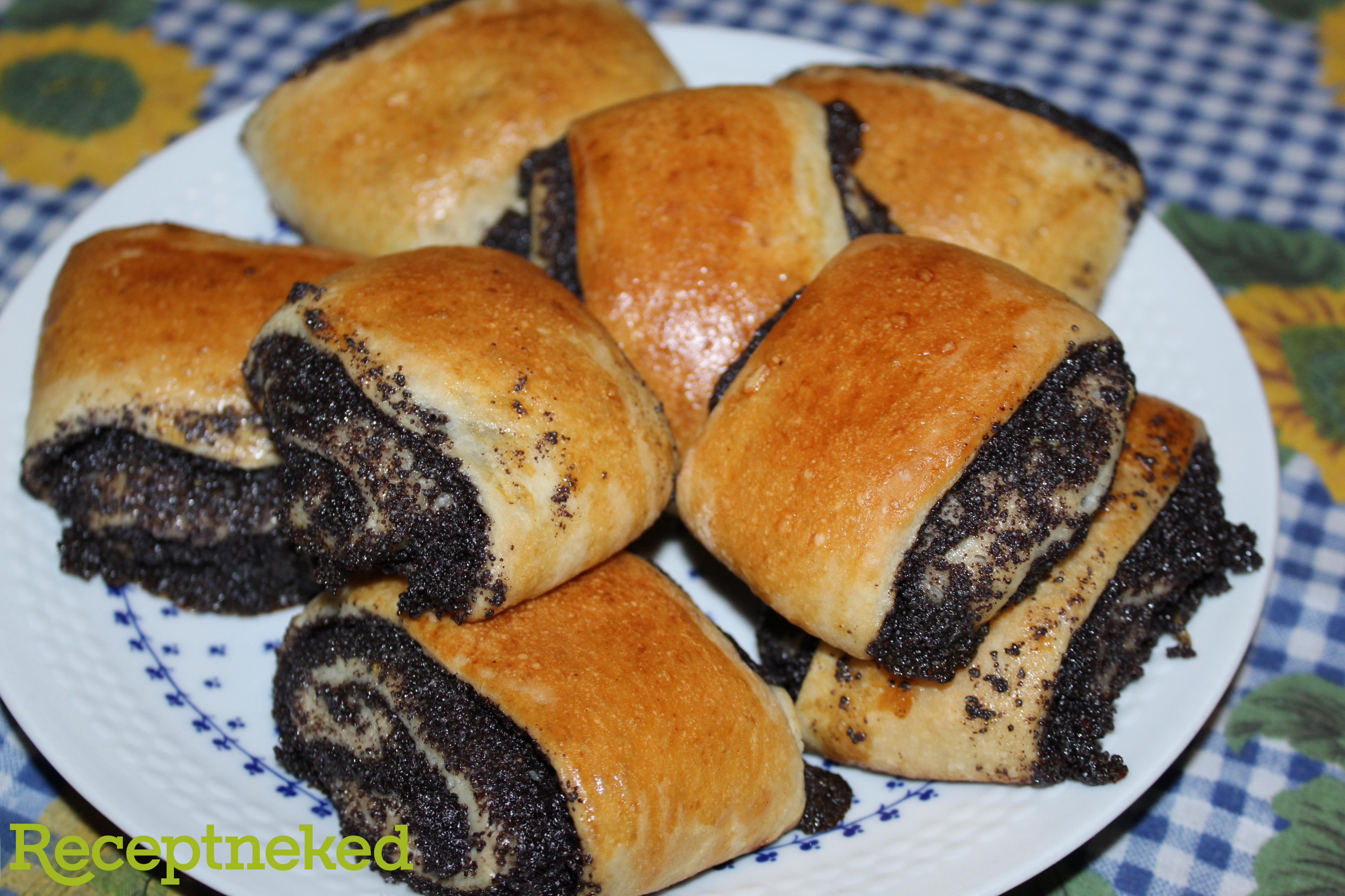 A tésztákat egyenként nyújtsuk ovális alakúra és képzeletben, függőlegesen osszuk három részre. A két szélét vágjuk be srégen. A közepére halmozzunk tölteléket, majd a széleket felváltva hajtsuk rá a mákos részre.