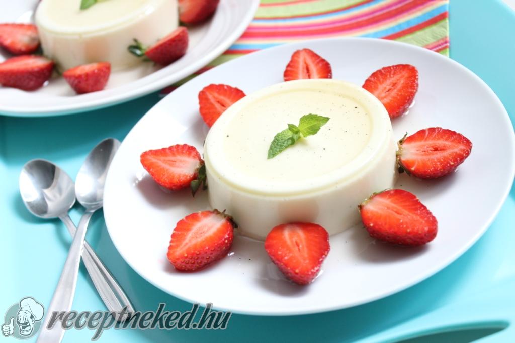Egy edényben folyamatos keverés mellett felforraljuk a tejet és a tejszínt. Hozzáadjuk a vaníliát, a cukrot és a zselatint. Ha újra felforrt, akkor el is elkészült. Még melegen formákba töltjük és tálalásig, de minimum 4 órára hűtőbe tesszük. Ha a formát kis időre forró vízba mártjuk, akkor ki is tudjuk belőle fordítani a desszertet.