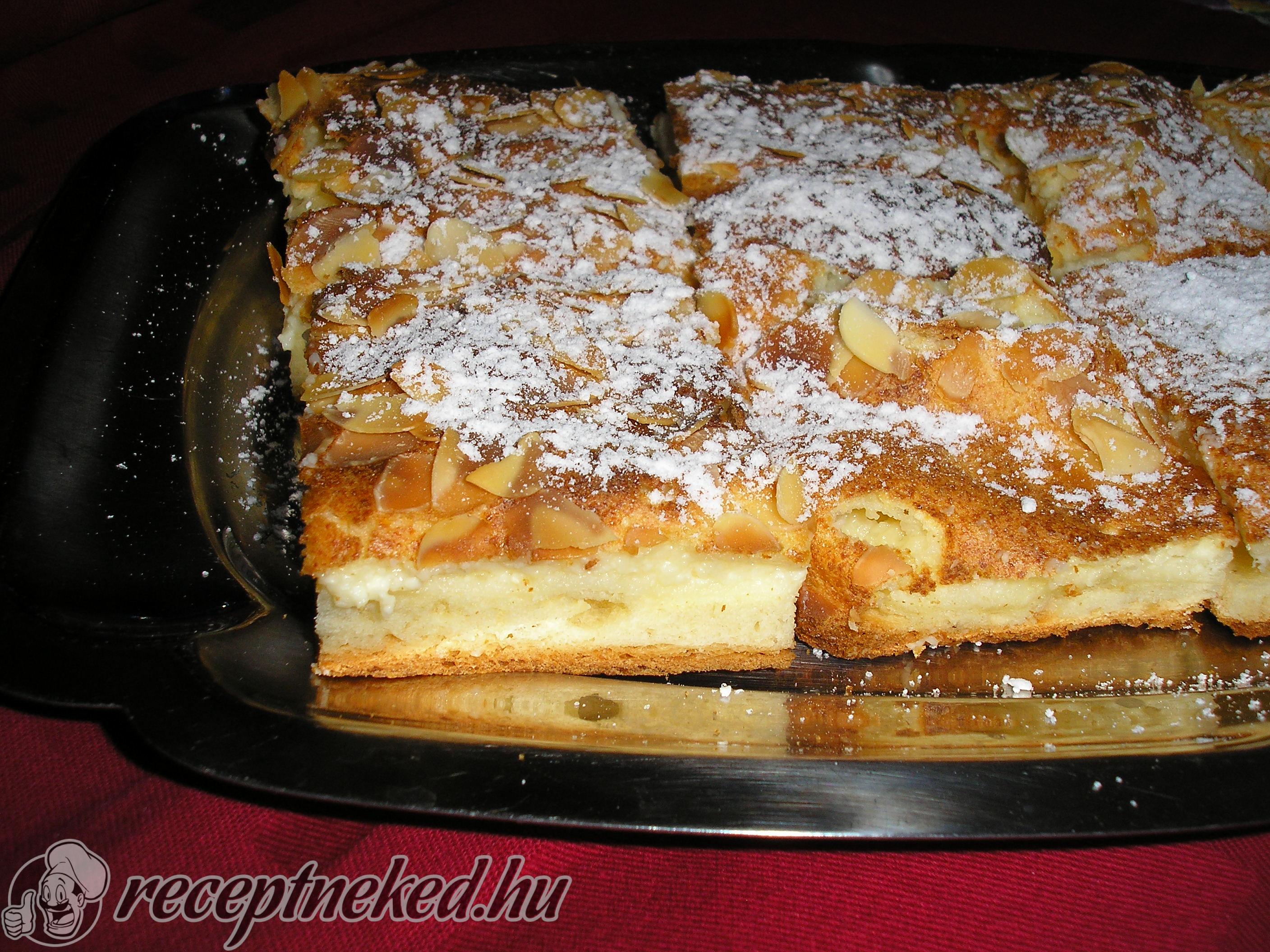 A krémet ráhalmozzuk a tetejére, és megszórjuk mandula forgáccsal.