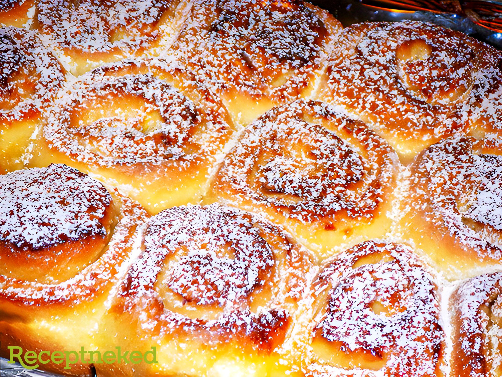 Ezután körülbelül 1 órán át pihentetjük. Előmelegített sütőben 200 fokon aranysárgára sütjük. A sütőből kivéve cukros tejben megforgatjuk, és még 1-2 percre visszatesszük.