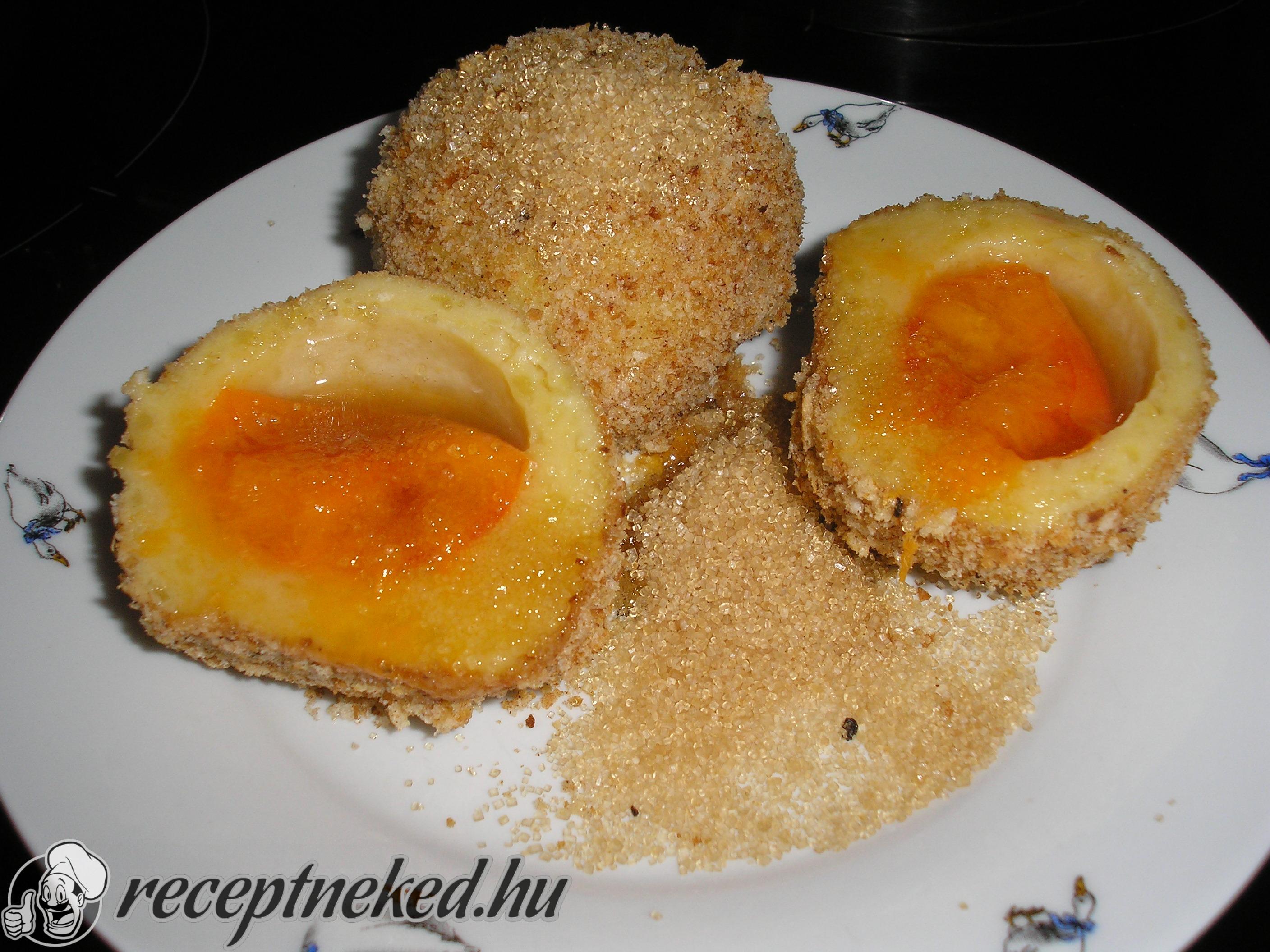 Míg a burgonya fő, a sárgabarackokat óvatosan felnyitjuk. Kivesszük a magot és 1 teáskanál barna cukrot teszünk a mag helyére.