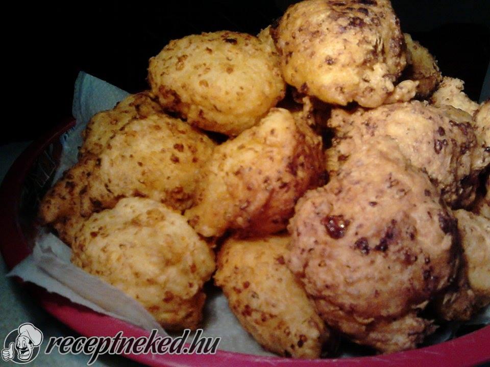 Az olajat felmelegítjük, majd kanállal bele szaggatjuk a fánkot (Ha kényelmesebb, formázhatunk belőle golyókat is), majd aranybarnára sütjük.