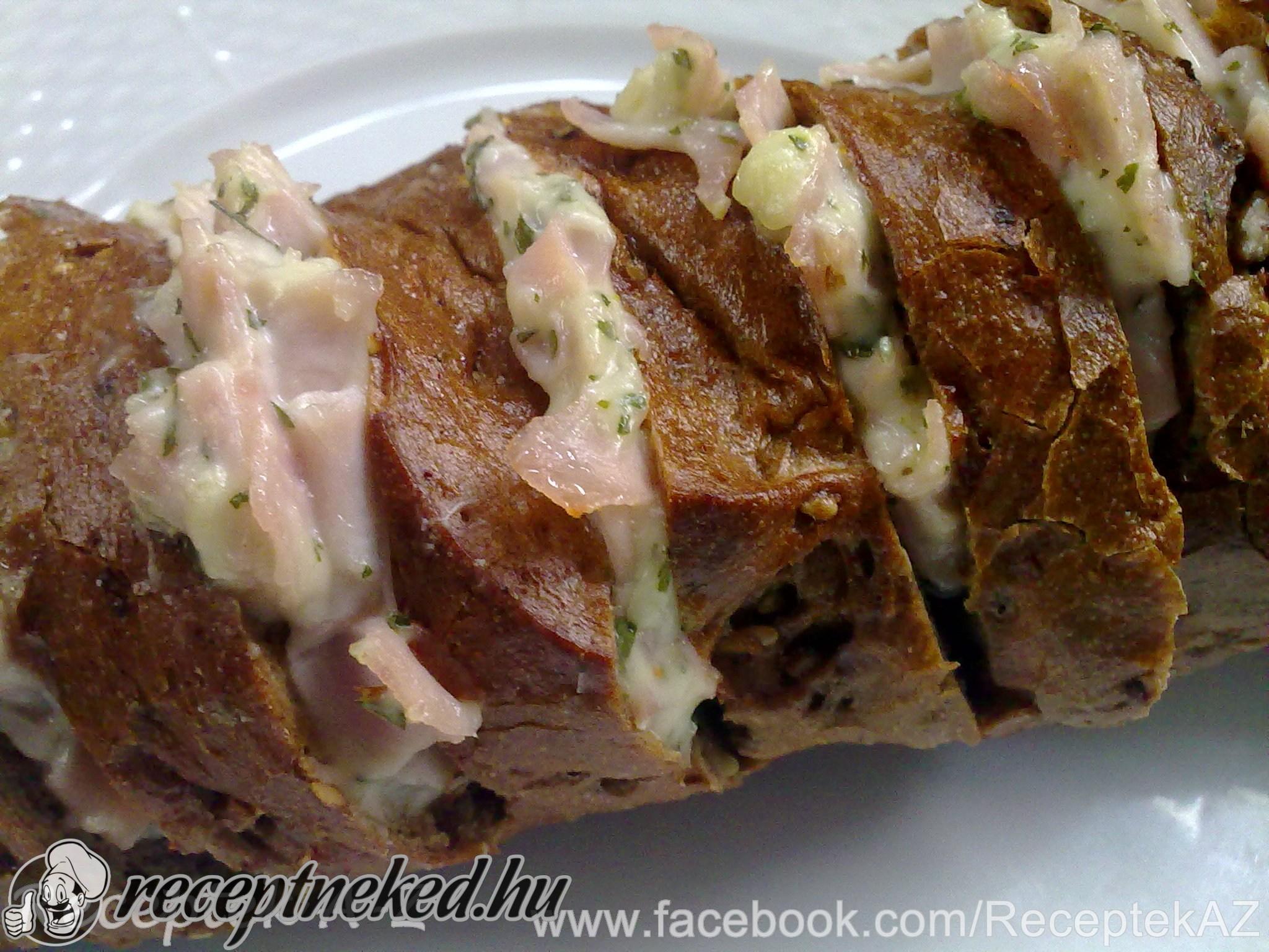 A bagettek két végét vágjuk le (én rögtön megeszem), majd osszuk három egyenlő részre. Ezután szedjük ki a belsejét és keverjük bele a túrókrémbe (ha emiatt száraznak tűnik a krém, adjunk hozzá még tejfölt).