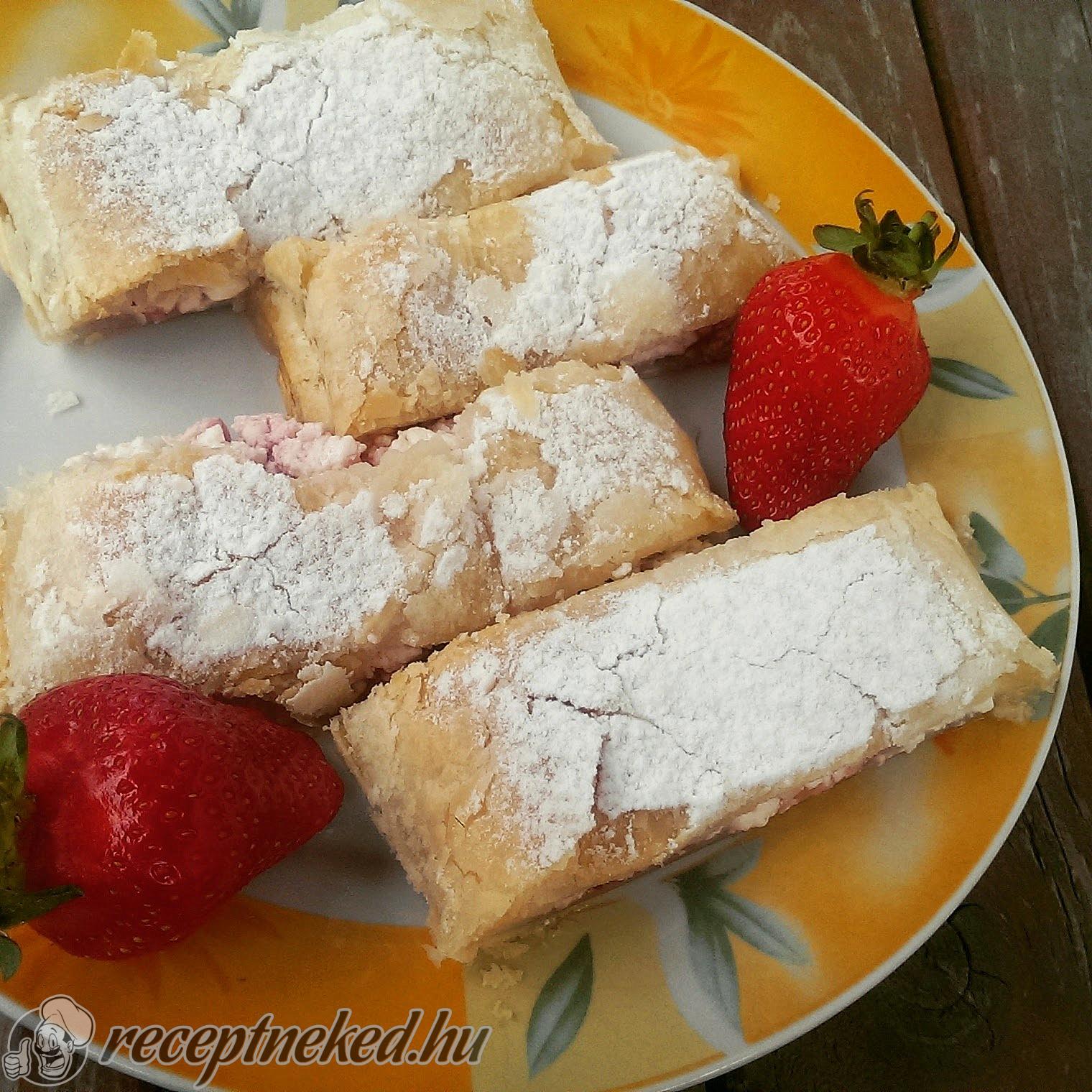 A töltelékhez a túrót villával jól összetörjük, hozzáadjuk a tojásokat, a cukrokat, a citrom héját, sót, és jól kikeverjük.