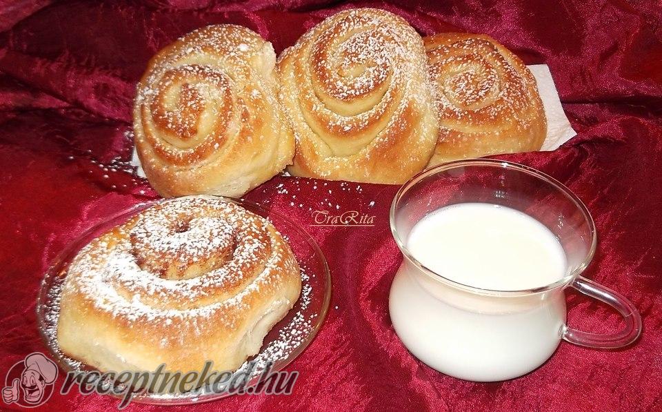 A csigákat sütőpapírral fedett tepsibe tesszük, kelesztjük, majd 200 fokos sütőbe tesszük. Ha már kezd színe lenni, meglocsoljuk őket langyos, vaníliás tejjel és készre sütjük.