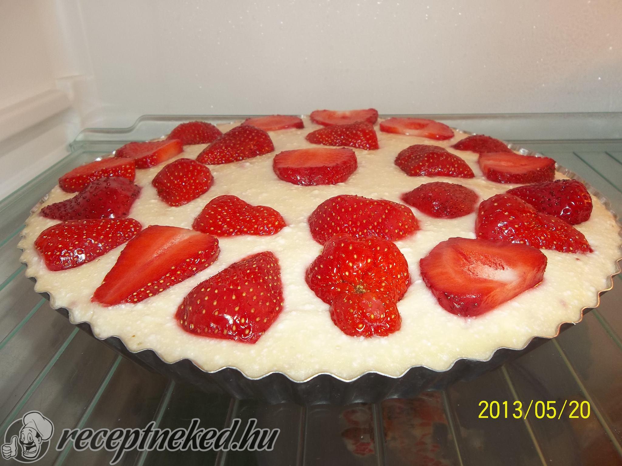 Közben elkészítjük a tölteléket. A tejben elkeverjük a pudingport és a cukrokat, majs sűrűre felfőzzük. A langyos pudingba belekeverjük a citromhéját és a túrót.