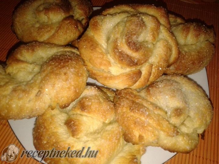 A deszkát kristálycukorral meghintjük, a tésztát ráborítjuk, apró cipókat vágunk belőle és a cukorban megforgatva formázzuk a tésztát ízlés szerint.
