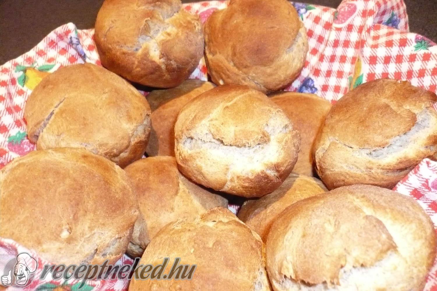 Cipóvá formálva, liszttel lazán megszórva, sűrű szövésű konyharuhával letakarva langyos helyen hagyjuk 1 órán át kelni hagyjuk. Ezután lisztezett deszkára borítjuk, hengerré görgetjük, öklömnyi darabokat szakítva belőle gömböket formázunk, és sütőpapírral bélelt (vagy enyhén margarinnal kent, lisztezett) sütőlapra rakosgatjuk.