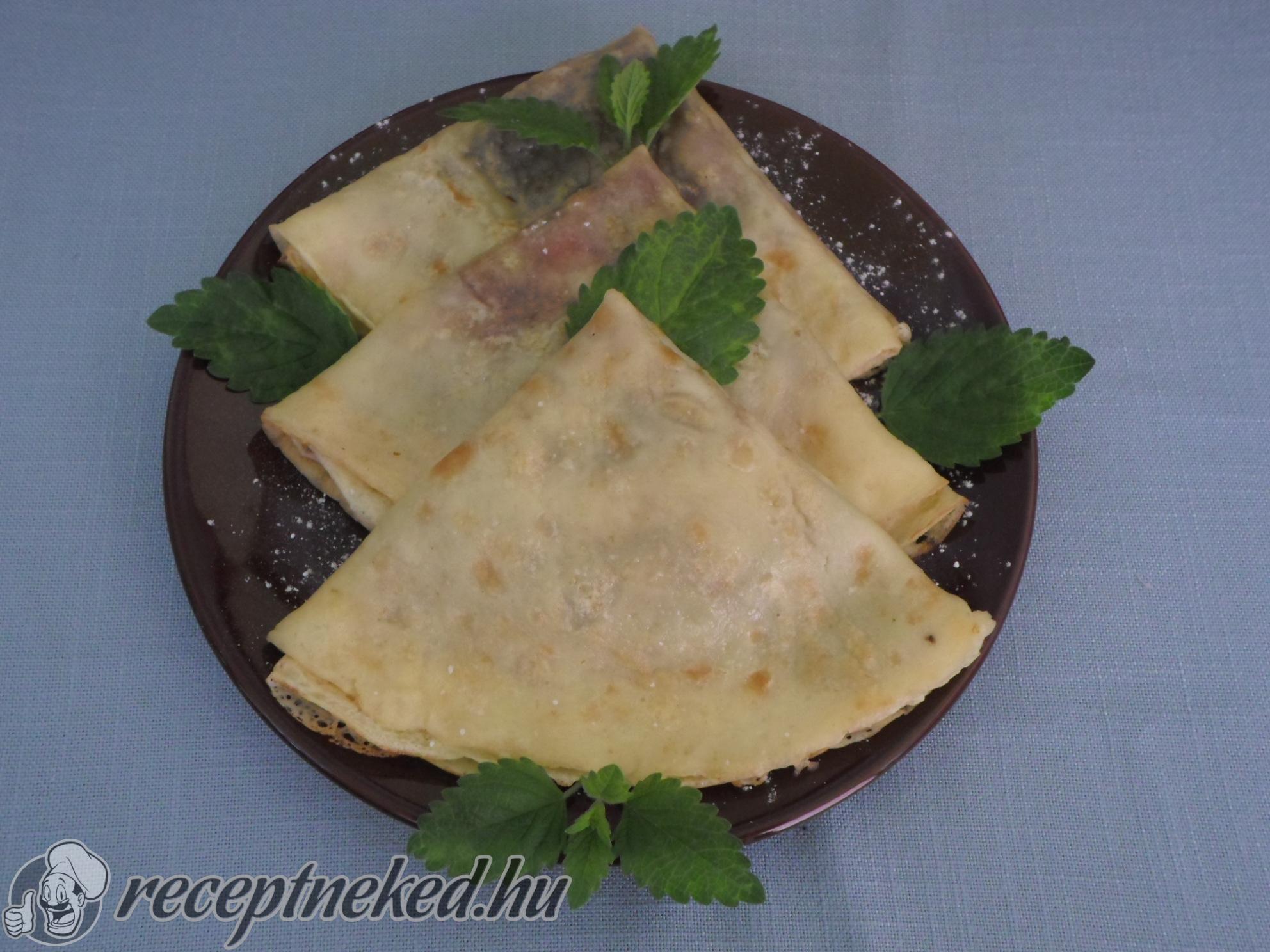 A porcukrot a fahéjjal összekeverjük és ezzel töltjük meg a palacsintákat.