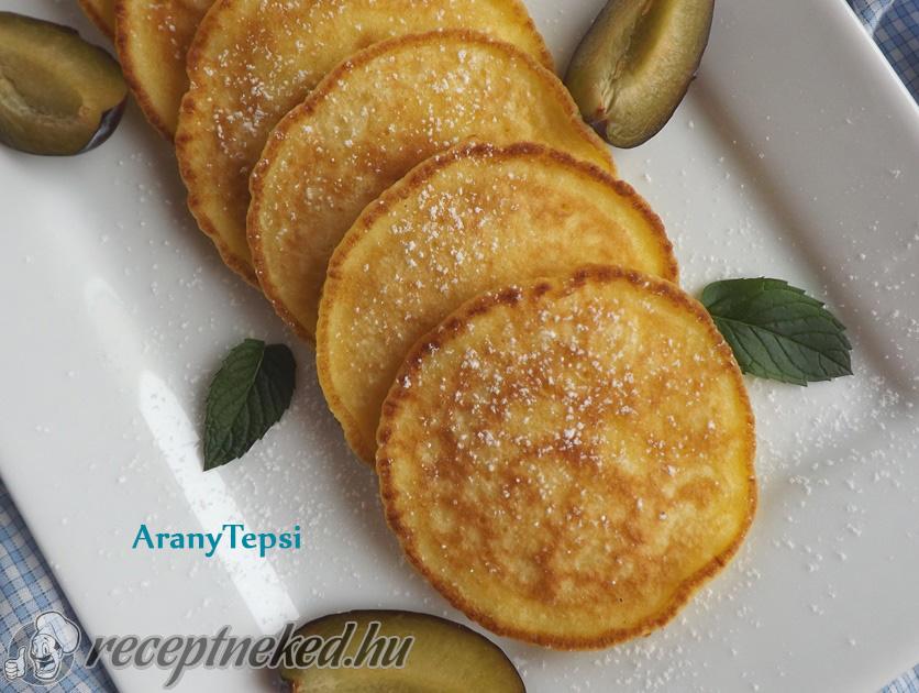 Egy serpenyőt jól felforrósítunk, kikenjük olajjal, majd kb. 2 evőkanálnyi tésztát teszünk bele.