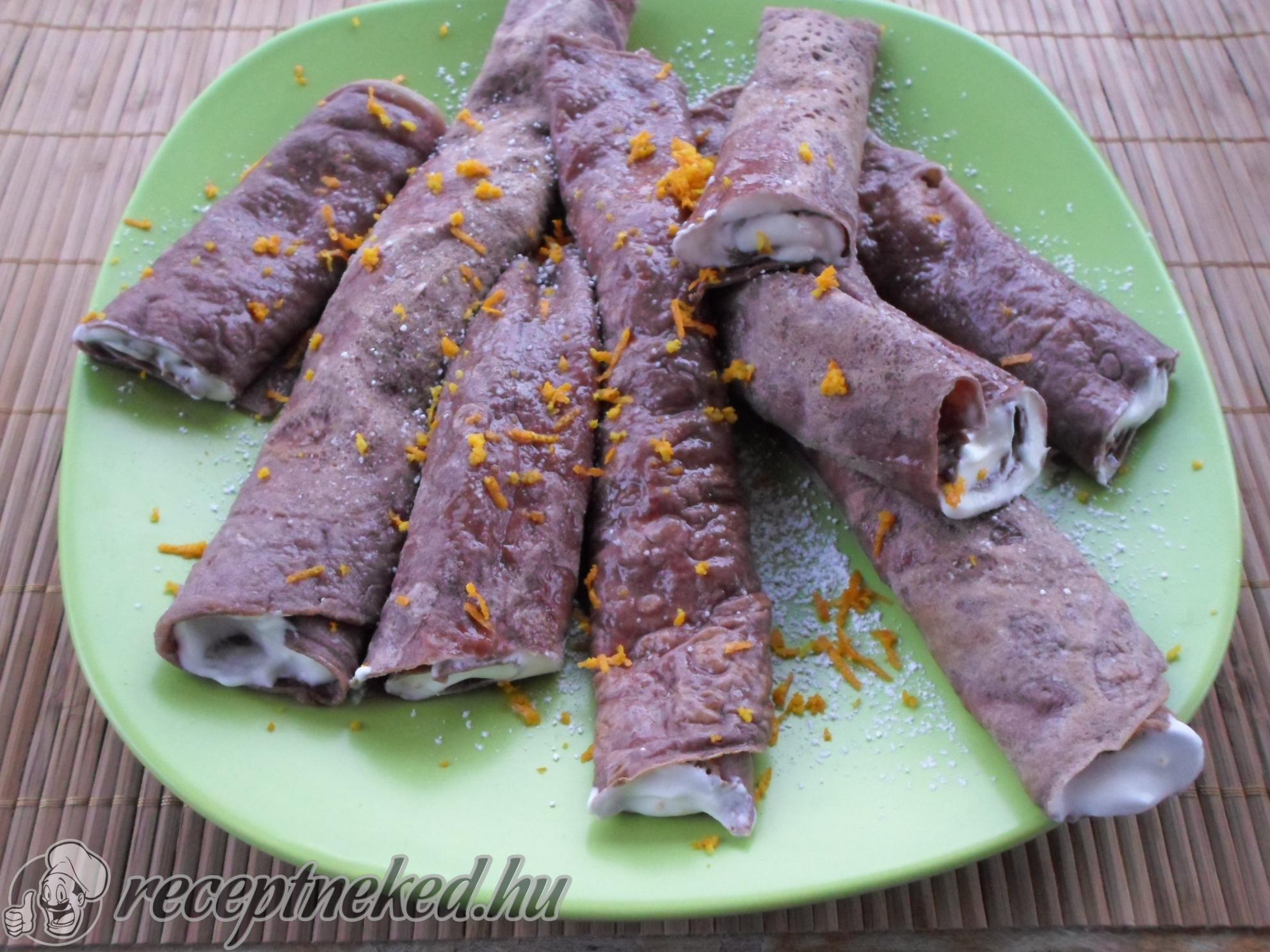 Végül enyhén olajozott palacsintasütőben, egyesével süssünk a szokásosnál kicsit vastagabb palacsintákat.