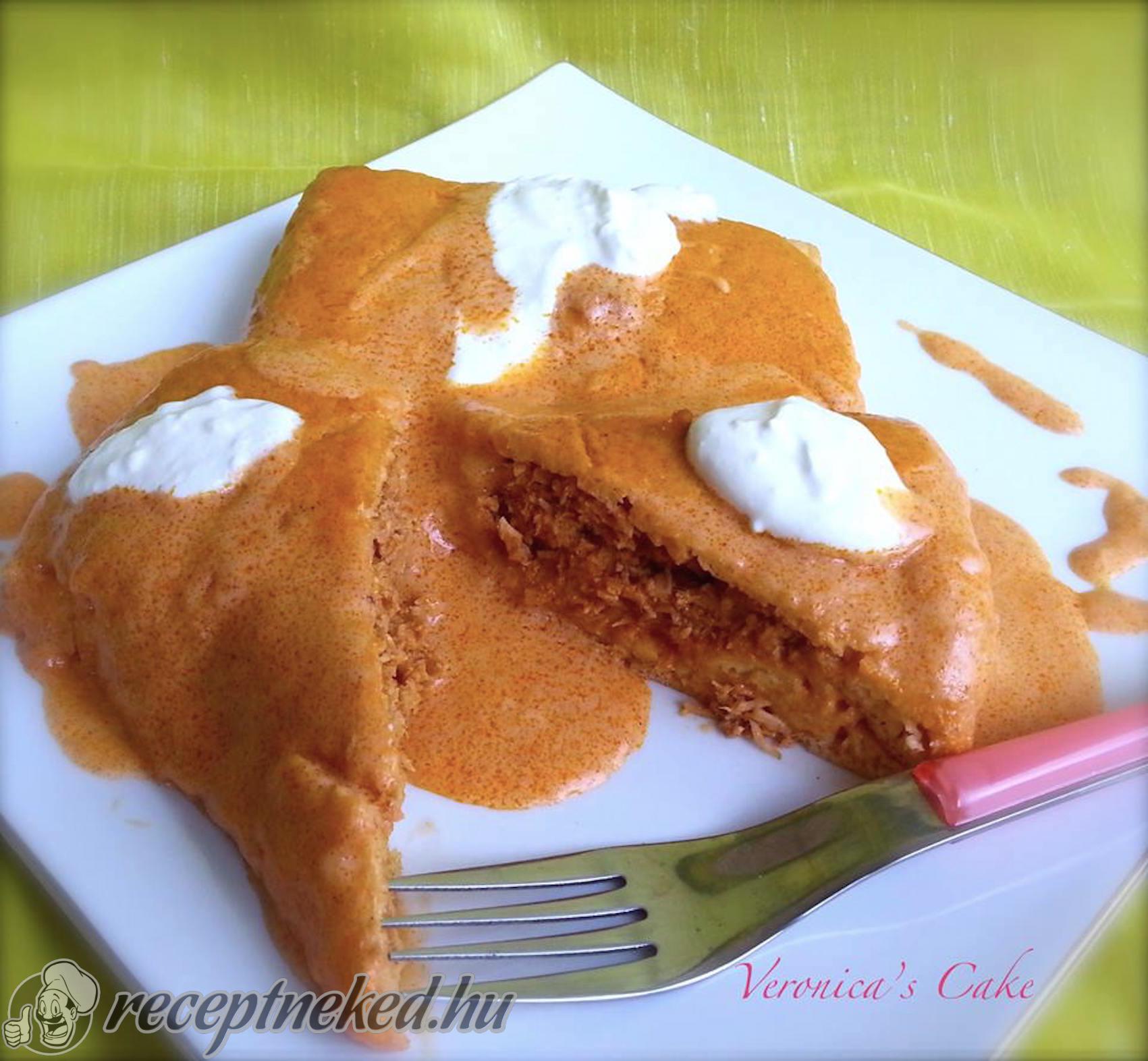 A palacsinta hozzávalóit egy keverőtálba mérjük és kézi habverővel alaposan összekeverjük. A palacsintasütőbe az első palacsinta sütése előtt egy evőkanálnyi olajat hevítünk. Ha sok, akkor a felesleget egy bögrébe leöntjük. Süssük ki a palacsintákat. Ebből a mennyiségből kb 8-10 db palacsinta lesz, nagyságától, vékonyságától függően.