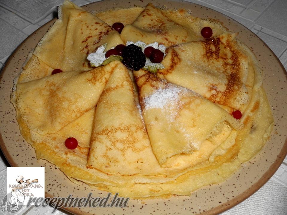 Vastagabb mint a hagyományos palacsinta, finom, piskótaszerű lesz a tészta. Ízlés szerint bármivel tölthető.