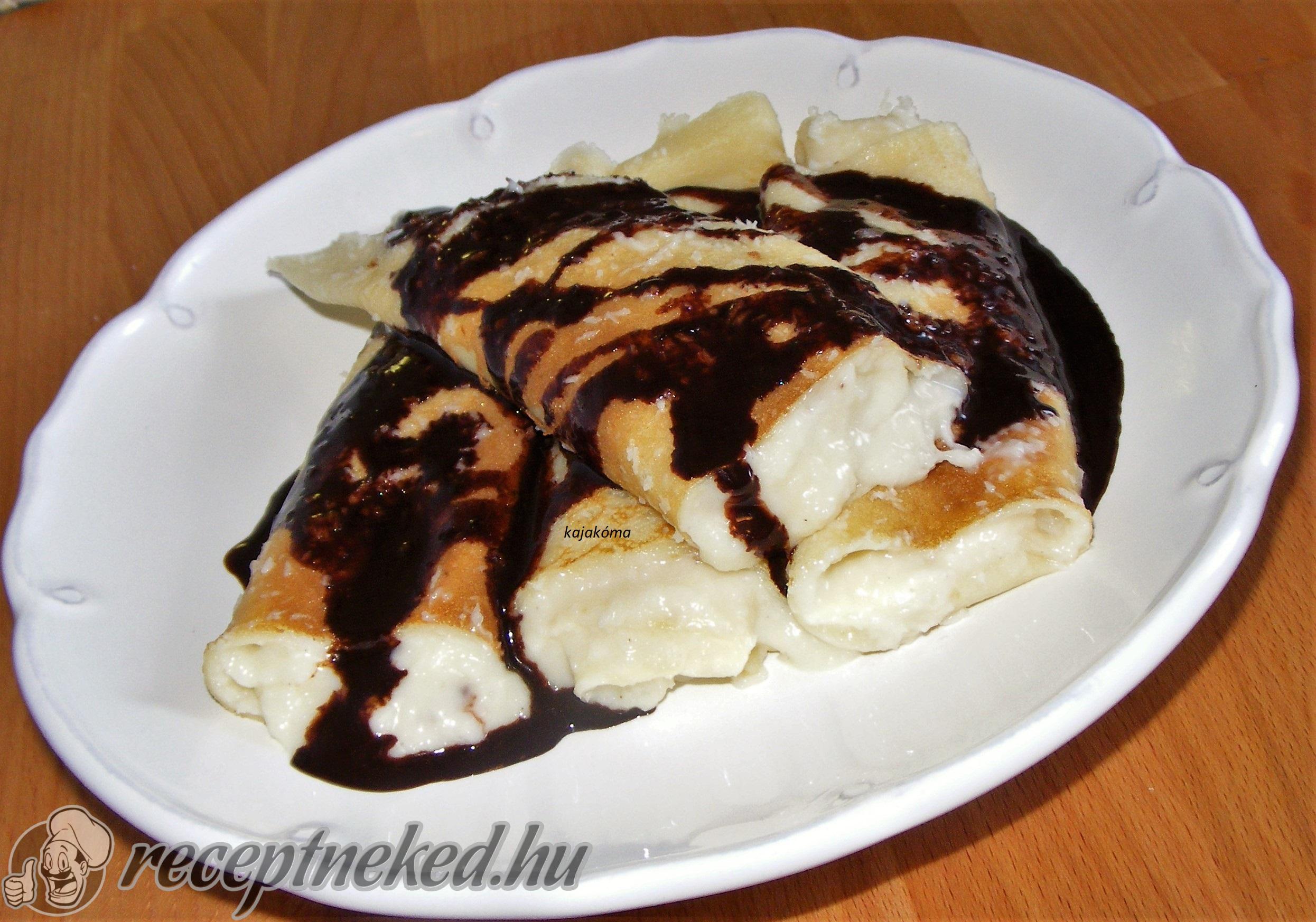 A betekert palacsintákát locsoljuk meg a csokiöntettel és tálaljuk melegen.