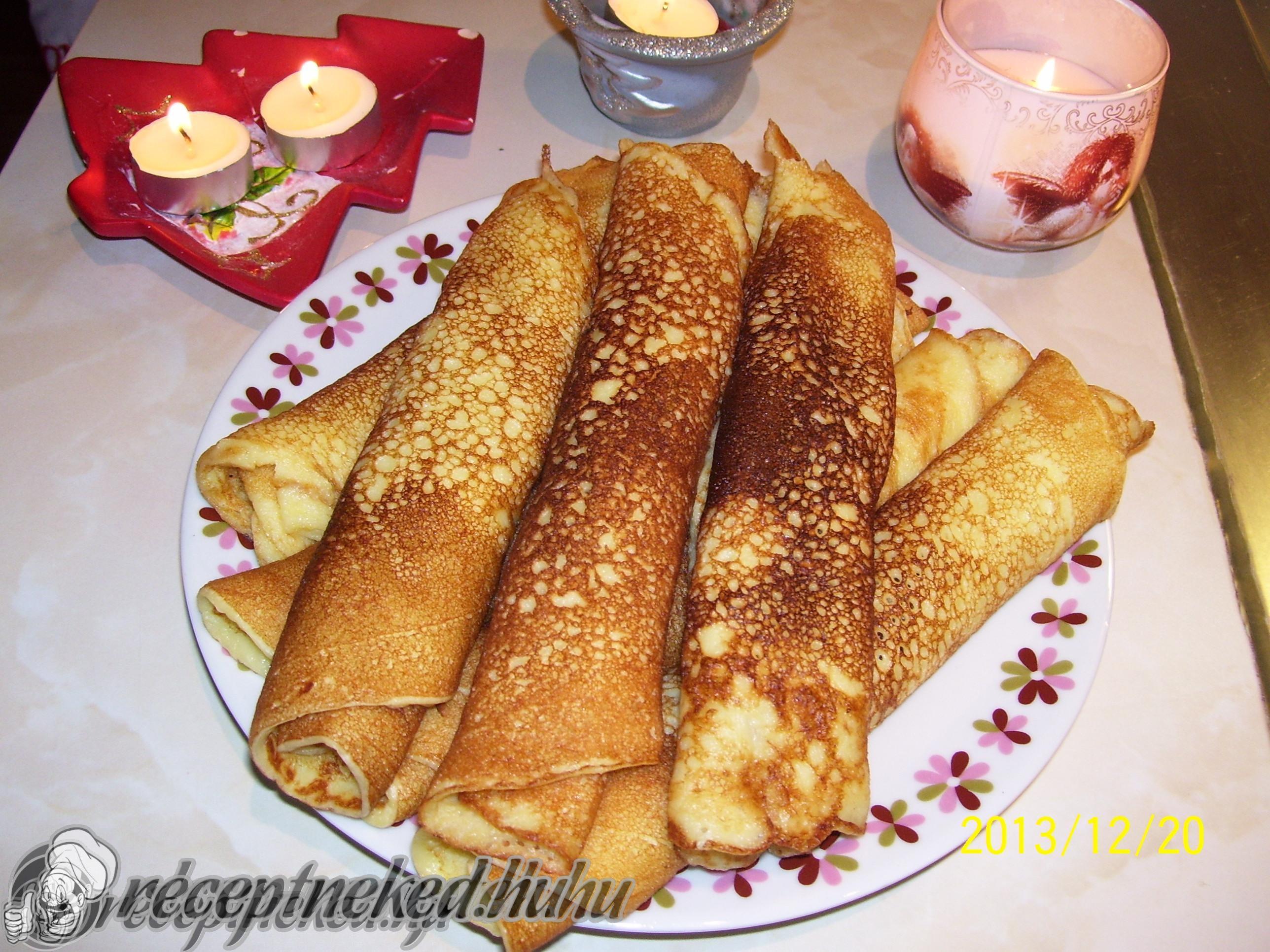 A tojásokat felvertem, majd hozzáadtam a sót, a tejet, 1 dl szódavizet és a lisztet. Legutoljára adtam hozzá az olajat és az egészet csomómentesre kevertem. Ha nagyon sűrű lenne, akkor hígítsuk még szódával.