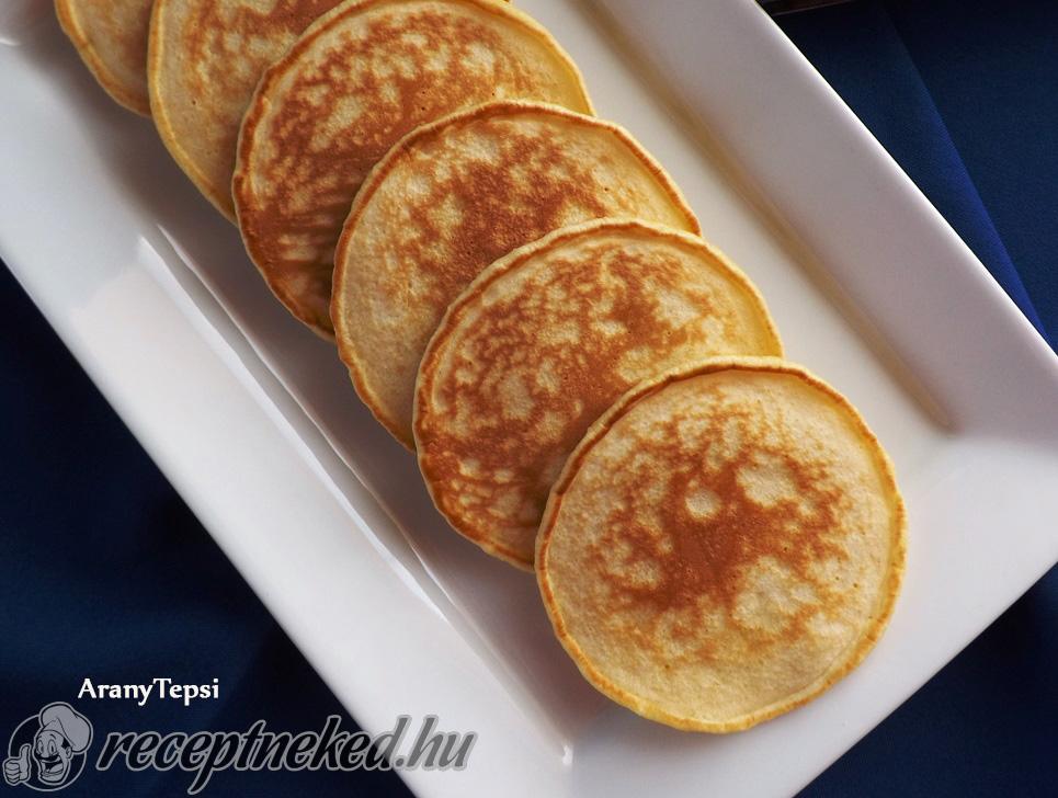 [box style=”info”]Kevés szakácskönyvem van, azokat is inkább ajándékba kaptam. Ezek közül a kedvencem Rachel Allen: A család kedvencei című könyve, amivel a Férjem lepett meg. Azért kedvelem, mert sok egyszerű recept is található benne, amit én is szívesen elkészítek. A legjobban a skót palacsinta tetszett meg. Gyerekeim rajonganak a palacsintáért, azok közül is az apróbb fajtáért. Ebből a palacsintából 9 db tenyérnyi darab lett, ami nem mondható soknak, de két kis étvágyú gyerkőcnek pont elegendő uzsonnára vagy épp ebéd utáni desszertként.