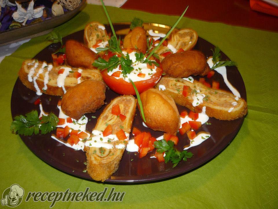 Megtöltjük a darált hússal, két oldalt behajtjuk, majd felülről is feltekerjük.