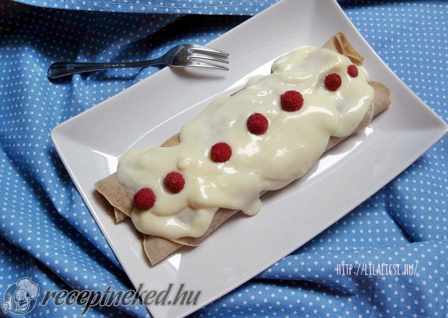 A palacsintákat megsütjük, majd túróval gazdagon megtöltjük, feltekerjük és kettesével tányérokra fektetjük. Végül vanília mártással jól megöntözzük.