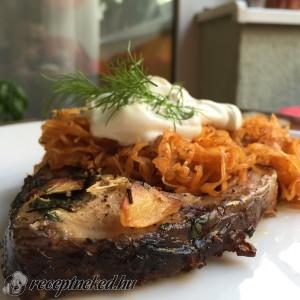 Vajban sült fokhagymás pontyszeletek paprikás savanyú káposztával