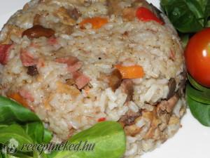Gombás-zöldséges rizses hús