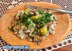 Gombás, májas rizses csirke