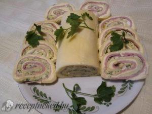 Sonkás füstölt sajttekercs almás kukoricasalátával