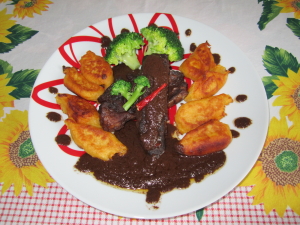 Pácolt tarja tepsiben sült kelbimbóval és édesburgonyával