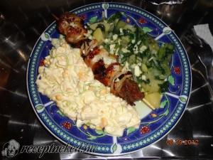 Báránycomb nyárson, mángoldos burgonyával és majonézes salátával