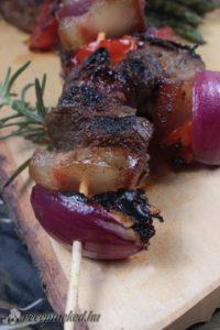 Áfonyás-narancsos pácban érlelt szarvascomb nyársra fűzve