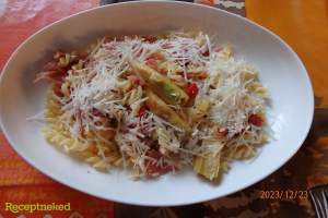 Articsókás, hagymás, sonkás orsótészta