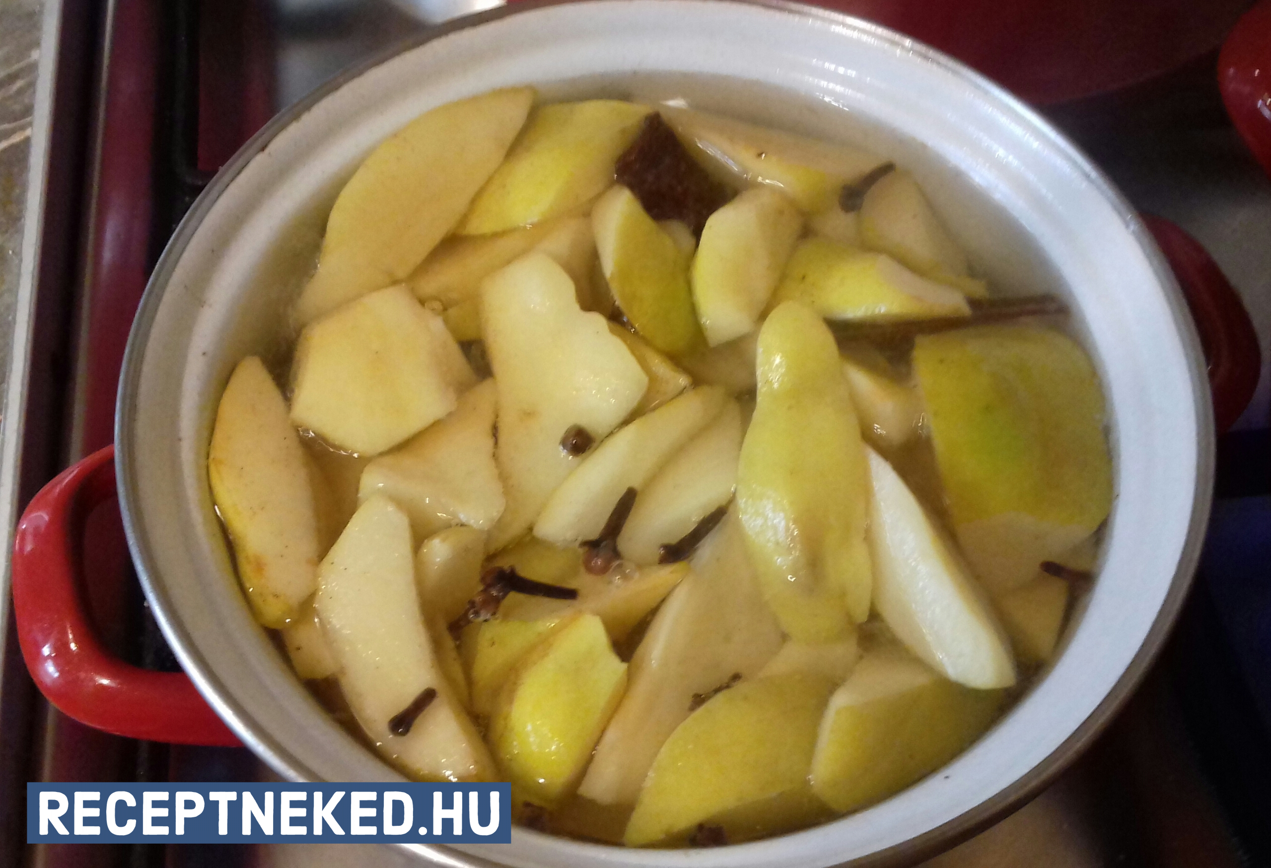 Egy edénybe belerakjuk a feldarabolt birsalmát és felöntjük annyi vízzel, hogy bőven ellepje. Ízesítjük cukorral, fahéjjal, szegfűszeggel és lassú tűzön puhára főzzük.