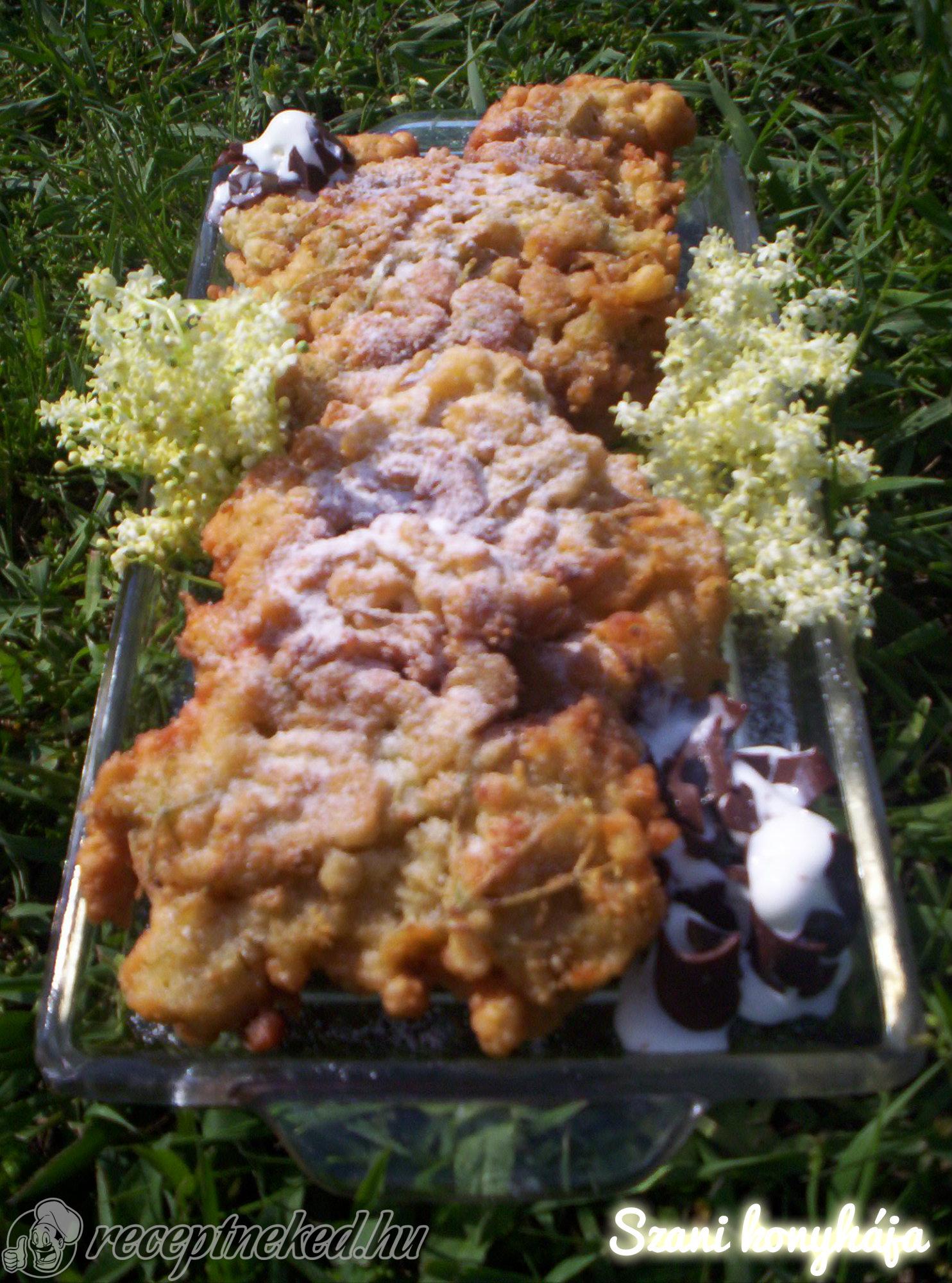 A bodzavirágokat egyenként megmártom a masszában és forró olajban aranybarnára sütöm.