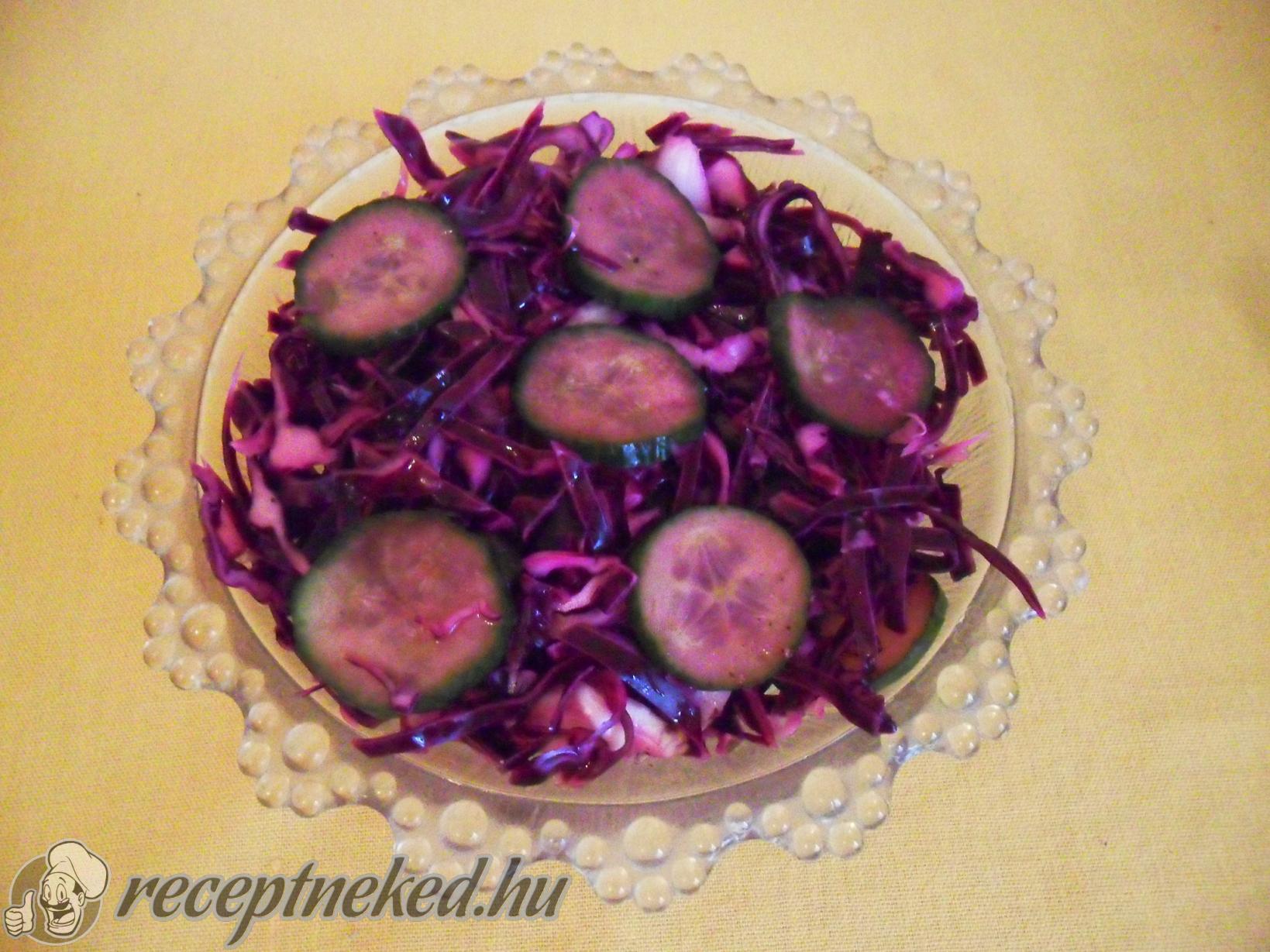A zöldségeket a sós léből alaposan kinyomkodjuk, és a kihűlt salátalébe tesszük. Körülbelül 1 órán át hagyjuk érlelődni.