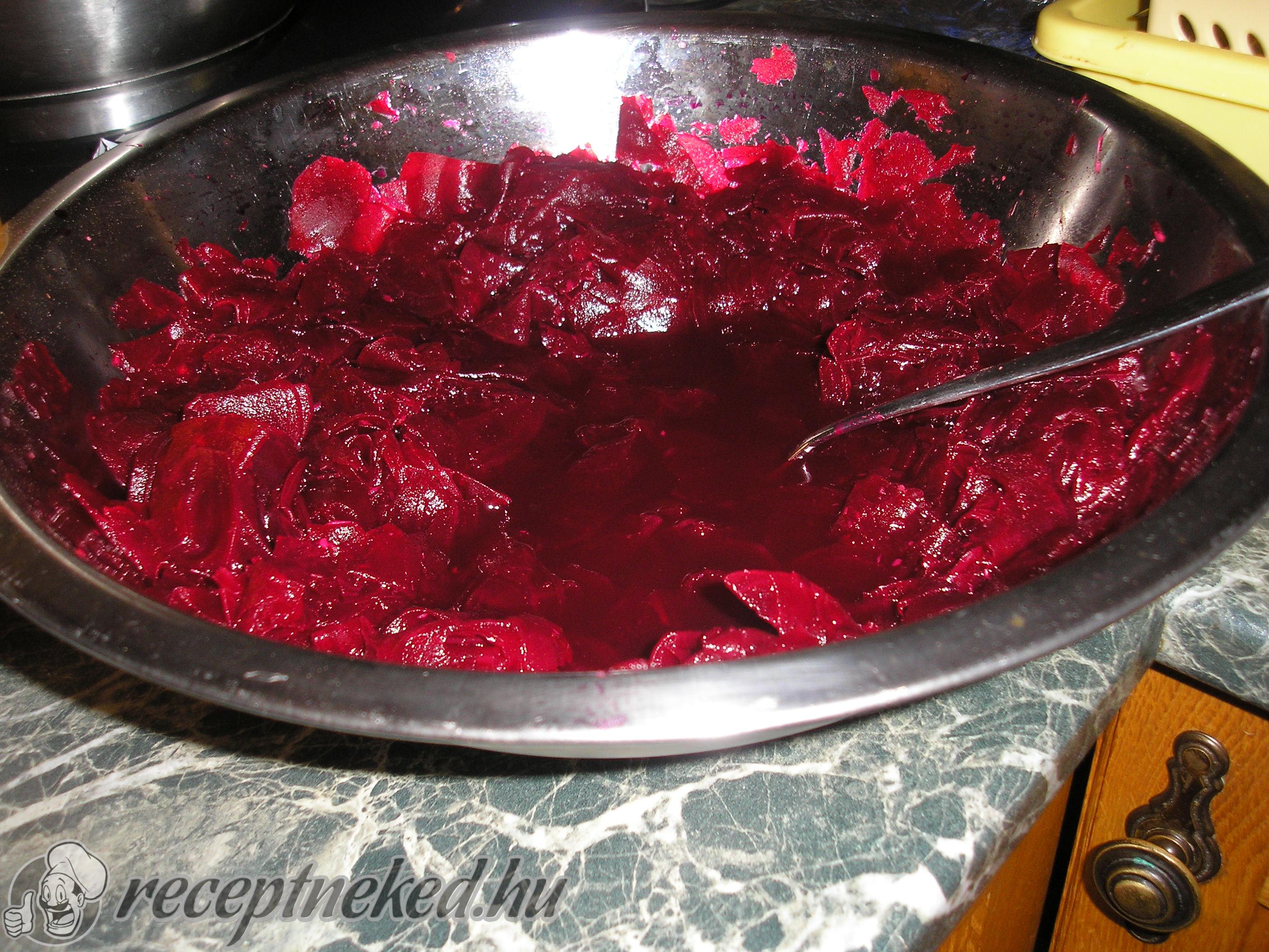 A céklát meghámozzuk és puhára főzzük. Ha kihűlt, akkor felkockázzuk.