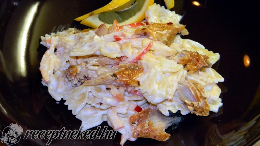 A kifőtt tésztát egy nagyobb tálba tesszük, hozzáadjuk a vékony csíkokra vágott almát, jól összekeverjük a joghurtos öntettel, és a végén hozzádaraboljuk, csak úgy a kezünkkel a makrélafilét. Így ha esetleg szálkába botlunk, el is tudjuk távolítani. Kissé összeforgatjuk, és tálaljuk.