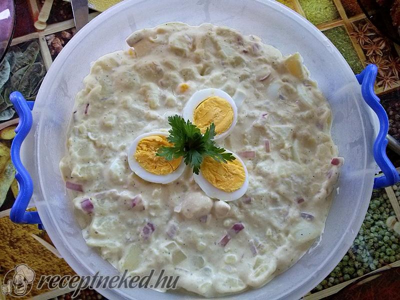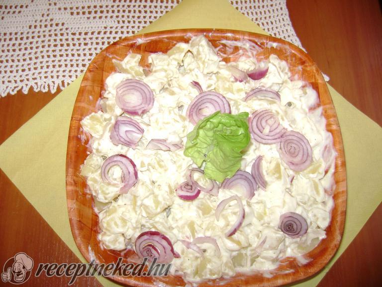 Óvatosan forgassuk össze a kihűlt krumplit a majonézes masszával.
