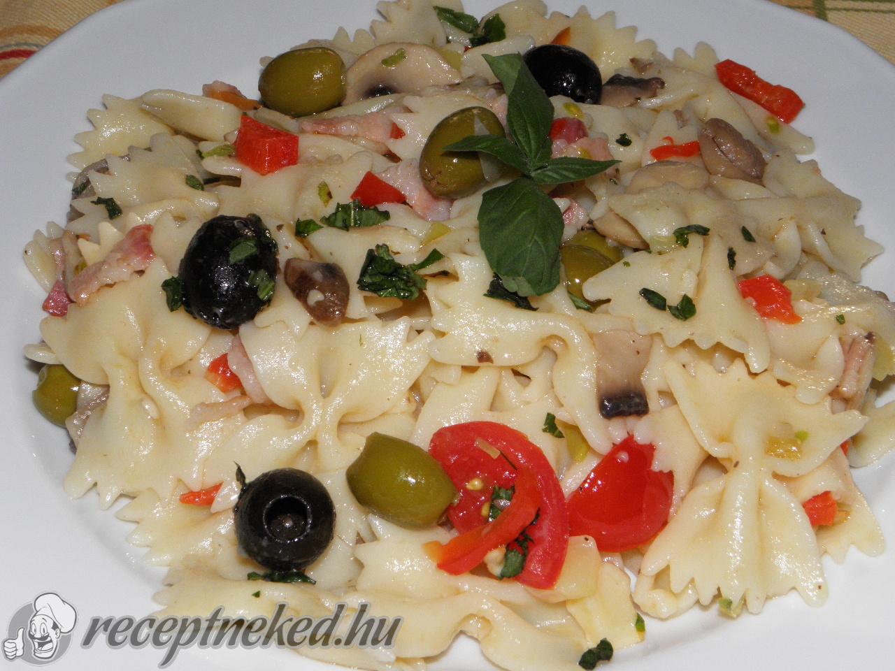 A tésztát (masni, orsó, fodros nagykocka, széles metélt) forrásban lévő sós vízben kifőzöm. Ha kész hideg vízzel leöblítem és lecsepegtetem.