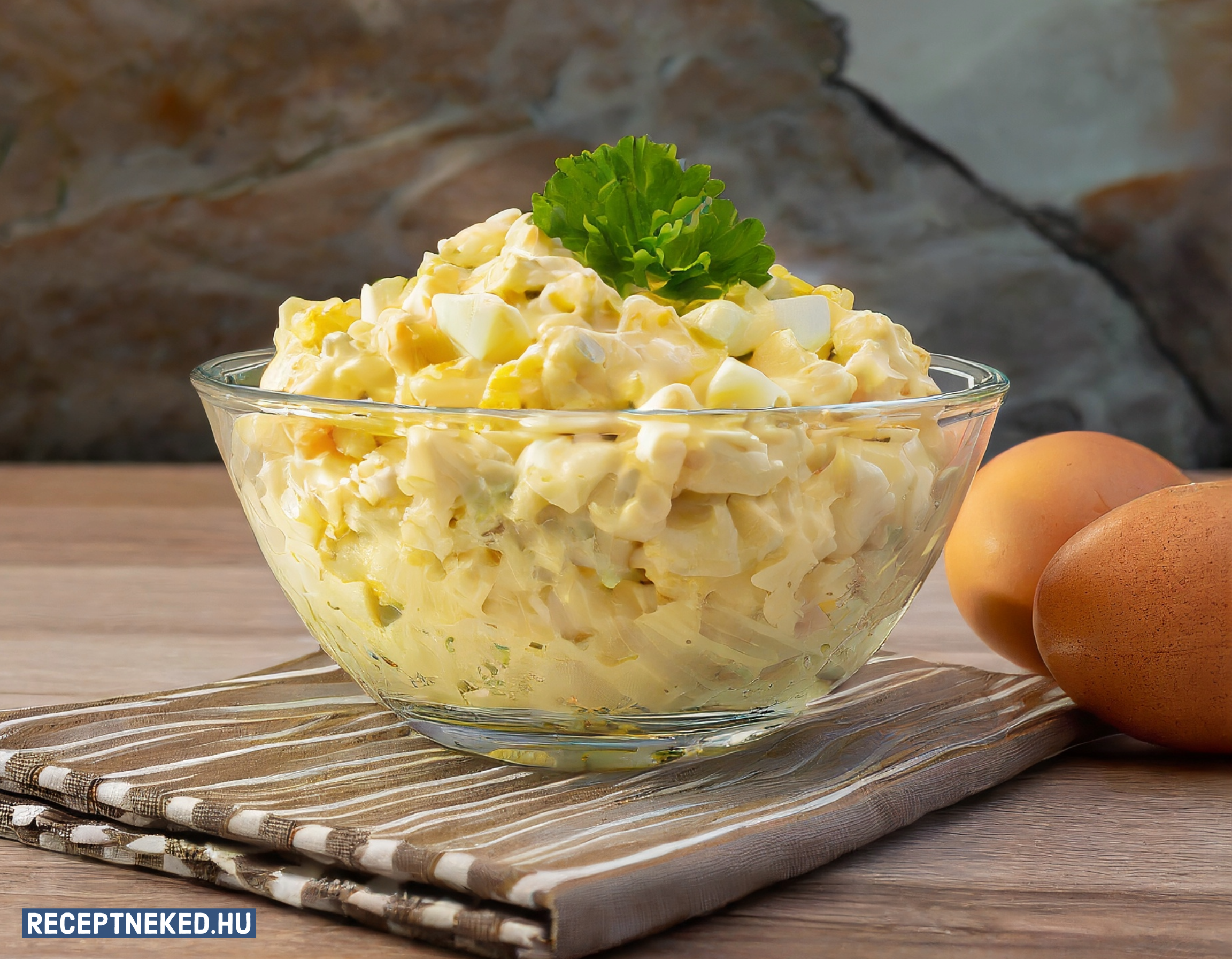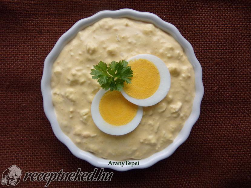 Ha kihűltek a tojások, tojásszeletelővel szeld fel őket. A tojások sárgáját vedd ki a felszeletelt tojásokból és egy villa segítségével törd össze. A tojások összetört sárgáját keverd hozzá a már kikevert mártáshoz. A mártásunk ettől szép sárga színt fog kapni.