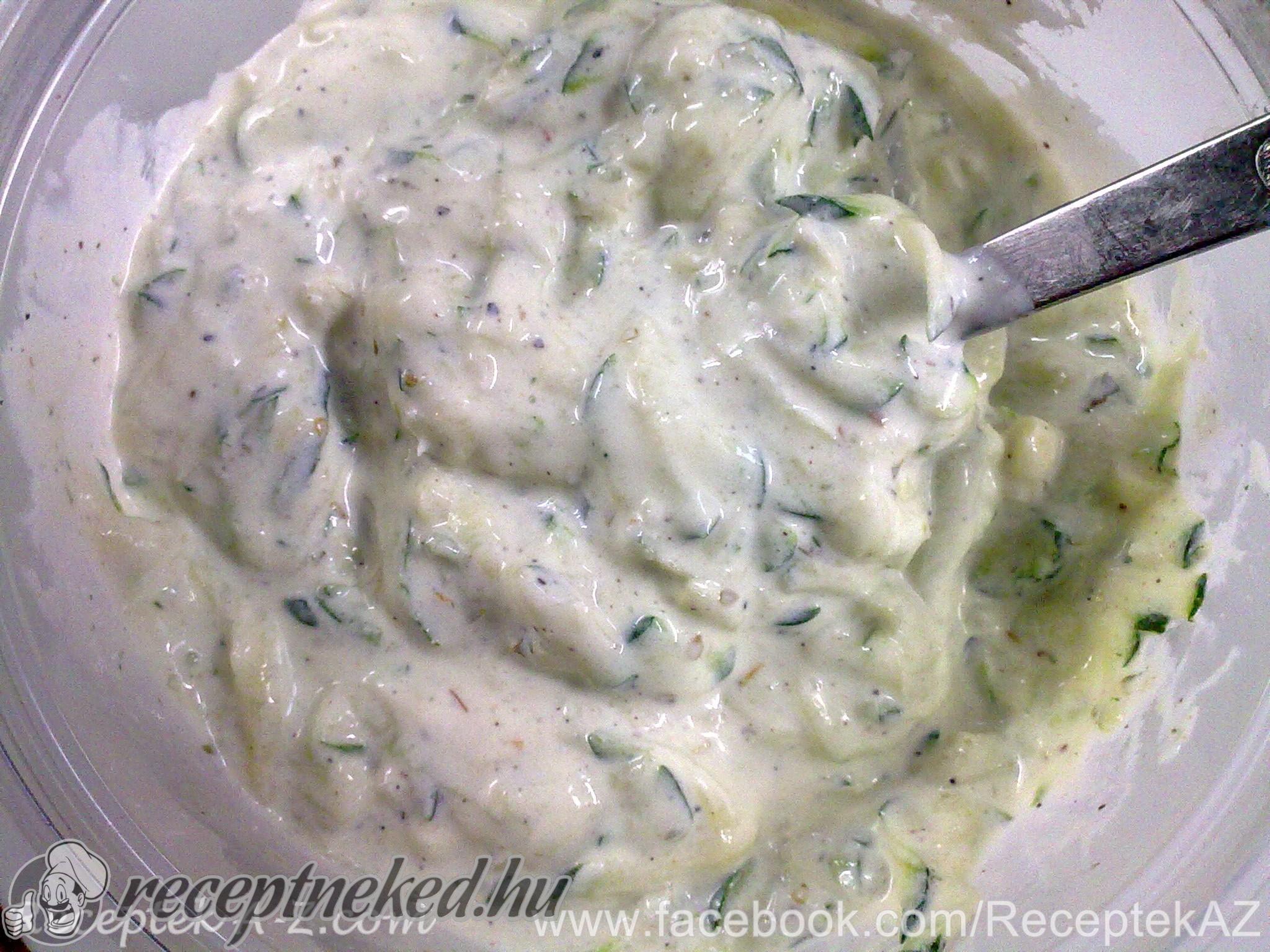 Az uborkát jól kinyomkodjuk és az öntethez keverjük. Sózni már nem szükséges, elég az, ami az uborkán maradt. Fogyaszthatjuk például sült húsokhoz vagy kenyérrel is.