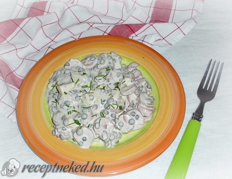 Keverjük össze a tejfölt, a majonézet és a mustárt egy nagy tálban. Ízesítsük citromlével és sóval. Ezt követően óvatosan forgassuk hozzá a főtt lencsét.