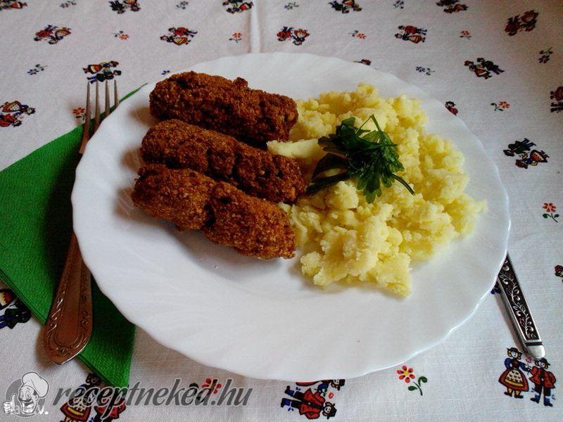Hosszúkás rudakat formázunk a masszából, majd zsemlemorzsába forgatjuk és forró olajban kisütjük.