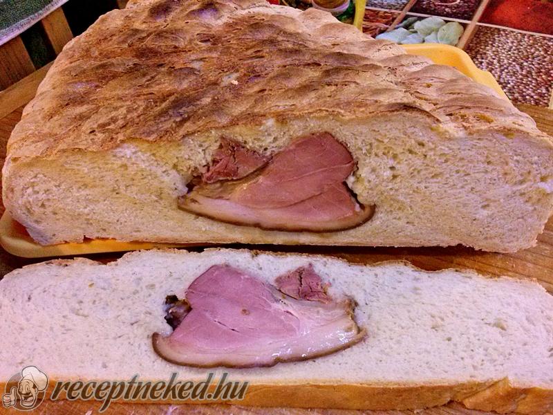 Behajtjuk mindkét oldalát, sütőpapírral bélelt tepsibe vagy tűzálló tálba tesszük. Ízlés szerint finoman berácsozhatjuk csak a díszítés kedvéért és hagyjuk még egy 15-20 percet pihenni. Előmelegített sütőben 190 fokon először lefedve, majd félidő után szabadon süssük készre (kb 70-75 perc).