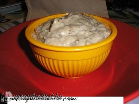 A füstölt szalonnát szintén felcsíkozzuk, majd kisütjük a zsírját, hozzáadjuk az apróra vágott vöröshagymát és a zúzott fokhagymát.