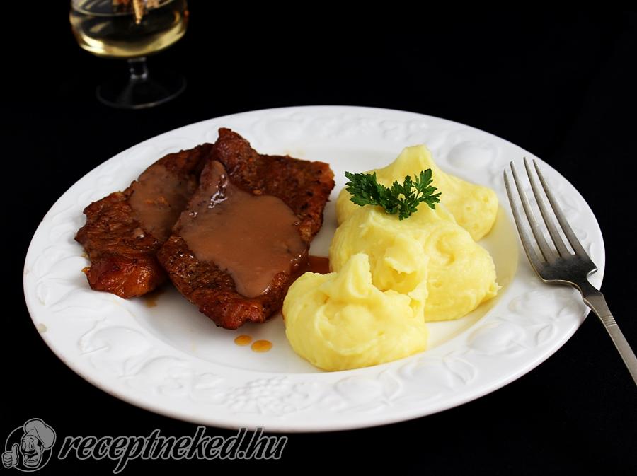 Az olajat hevítsük fel, helyezzük bele a hússzeleteket, majd mindkét oldalát hirtelen süssük pirosra. Ezután szedjük ki a zsiradékból és tegyük félre.