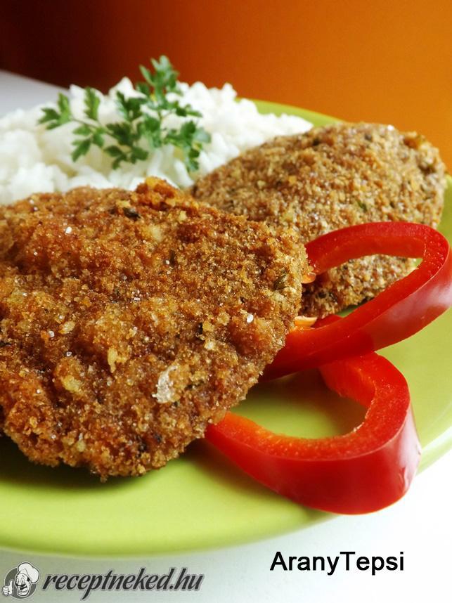 A májat a szokásos módon bepanírozzuk (liszt, tojás, fűszeres morzsa), majd közepes lángon, a forró olajban szép pirosra sütjük pár perc alatt. Amint kivettük az olajból, megszórjuk sóval.