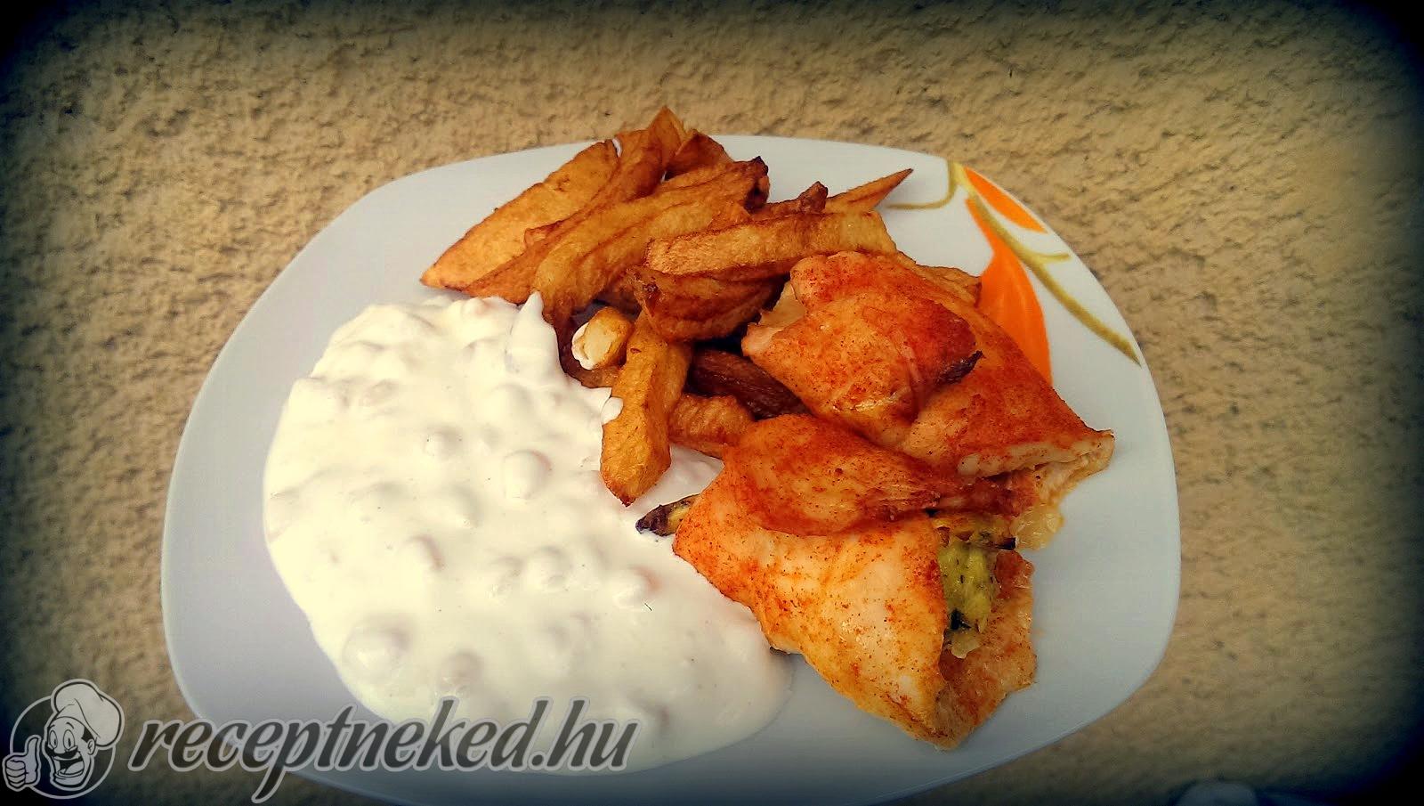 A húst mindkét oldalát sózzuk, borsozzuk, majd a közepébe rakjuk a tölteléket és feltekerjük, mint egy palacsintát.