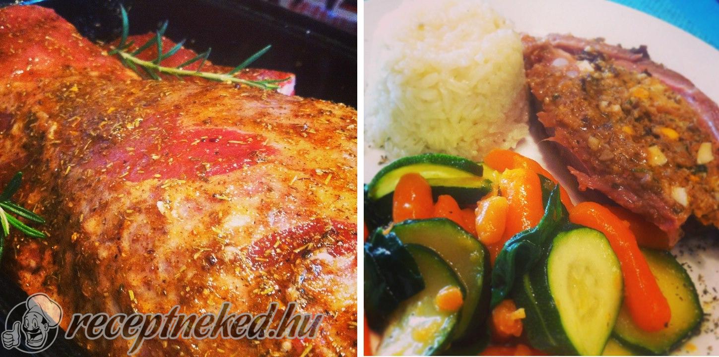 Egy tepsibe helyezzük a megtöltött húst, és bőségesen bekenjük a páchoz használt olajjal elkevert fűszerkeverékkel. A tepsi aljára kevés vizet öntünk, a hús mellé rozmaringágakat helyezünk. Ha van rá lehetőség, ezt a lépést előző este végezzük el, hogy a hús egy éjszaka alatt magába szívja a fűszerek ízét.