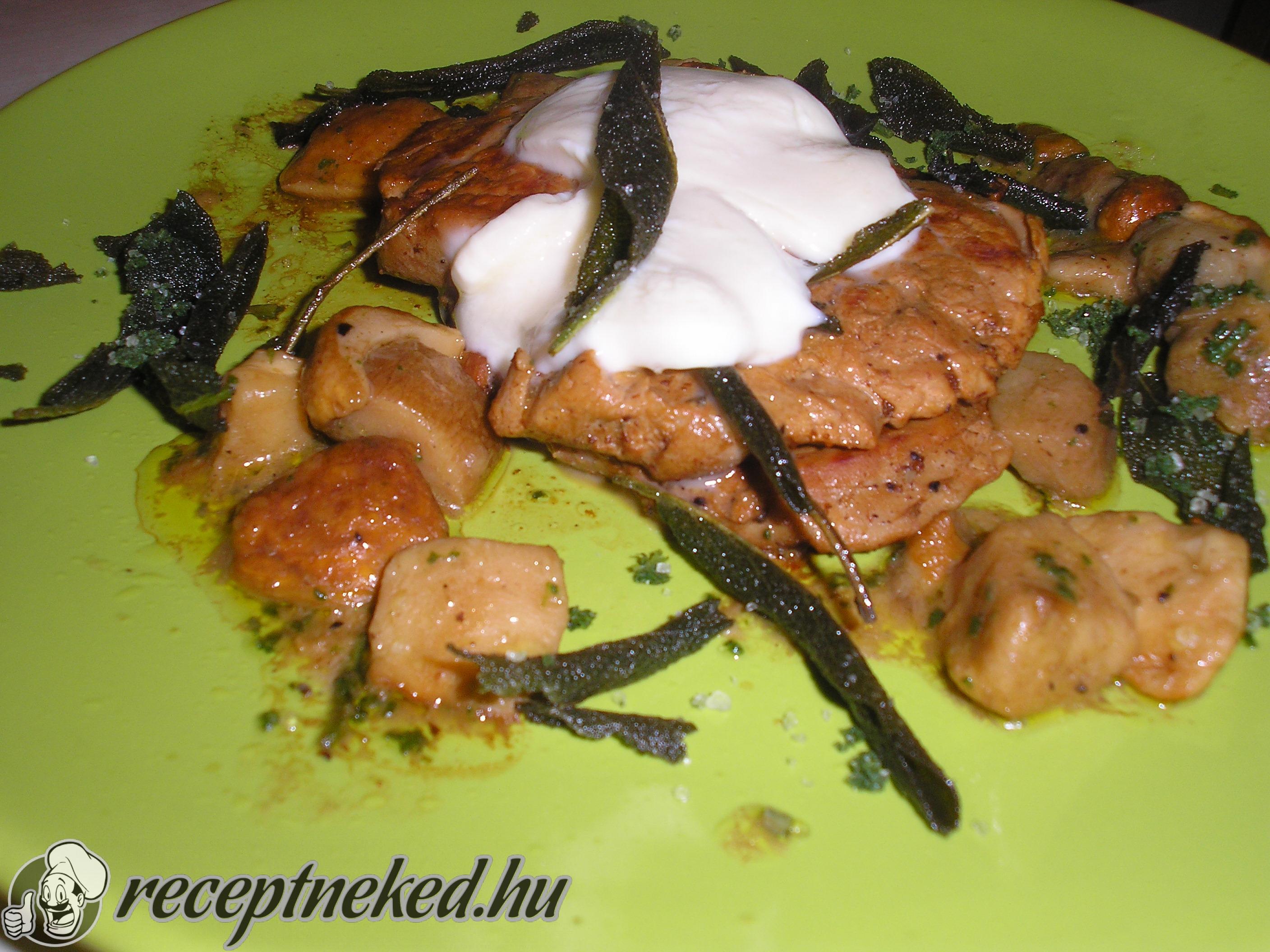 Ezután a serpenyőben lévő pecsenyelevet kisebb lángon, néha megkeverve, pár perc alatt kissé sűrítsük be, majd tálalásig szintén tartsuk melegen.