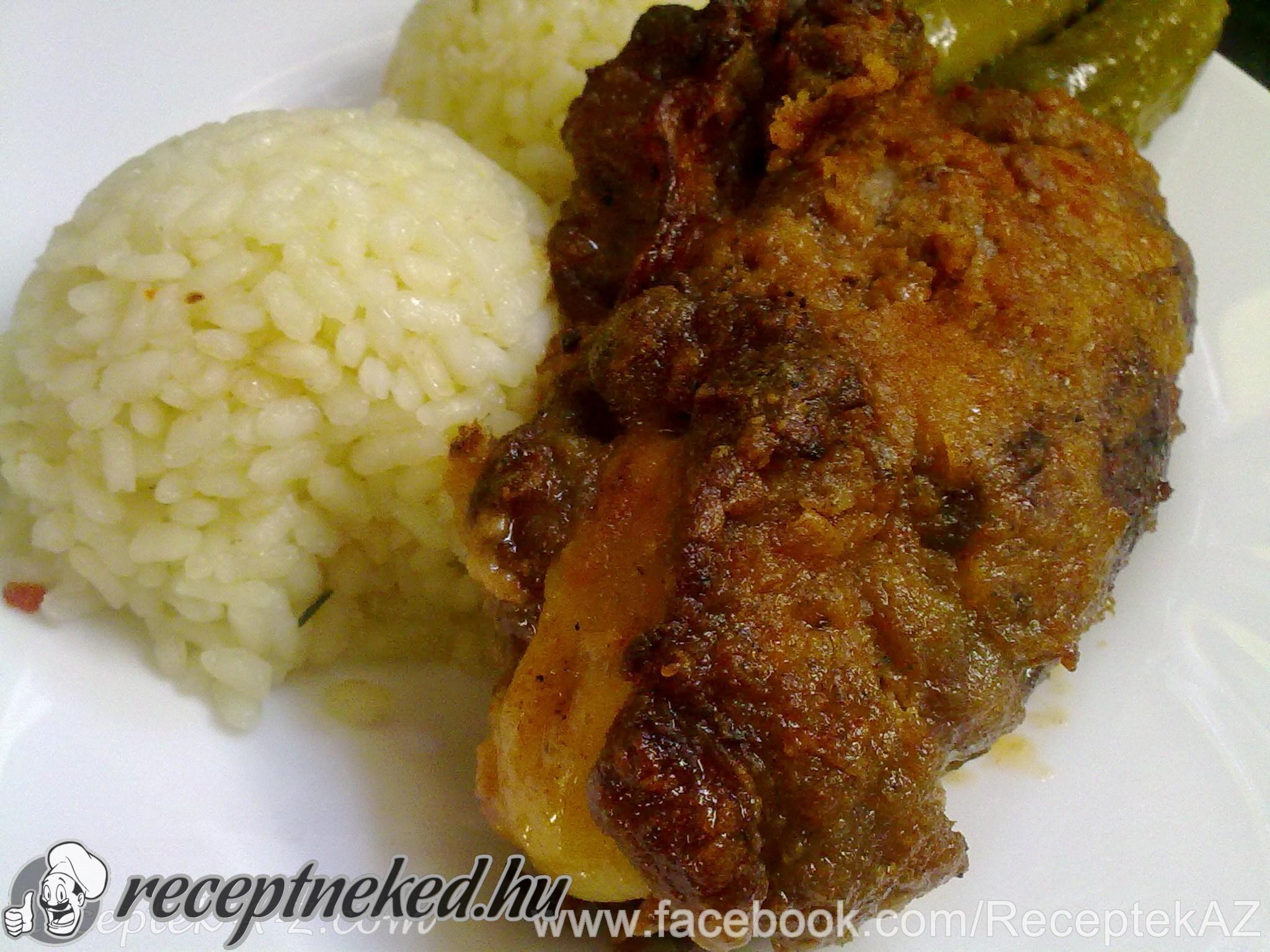 A lisztbe belekeverjük a fűszerpaprikát, megforgatjuk benne a töltött húsokat. Egy olajjal kikent tepsibe rakjuk a húsokat és forró, előmelegített sütőben (190 °C) kb. 40-45 perc alatt egyszer-kétszer megfordítva pirosra sütjük. Főtt rizzsel tálaljuk.
