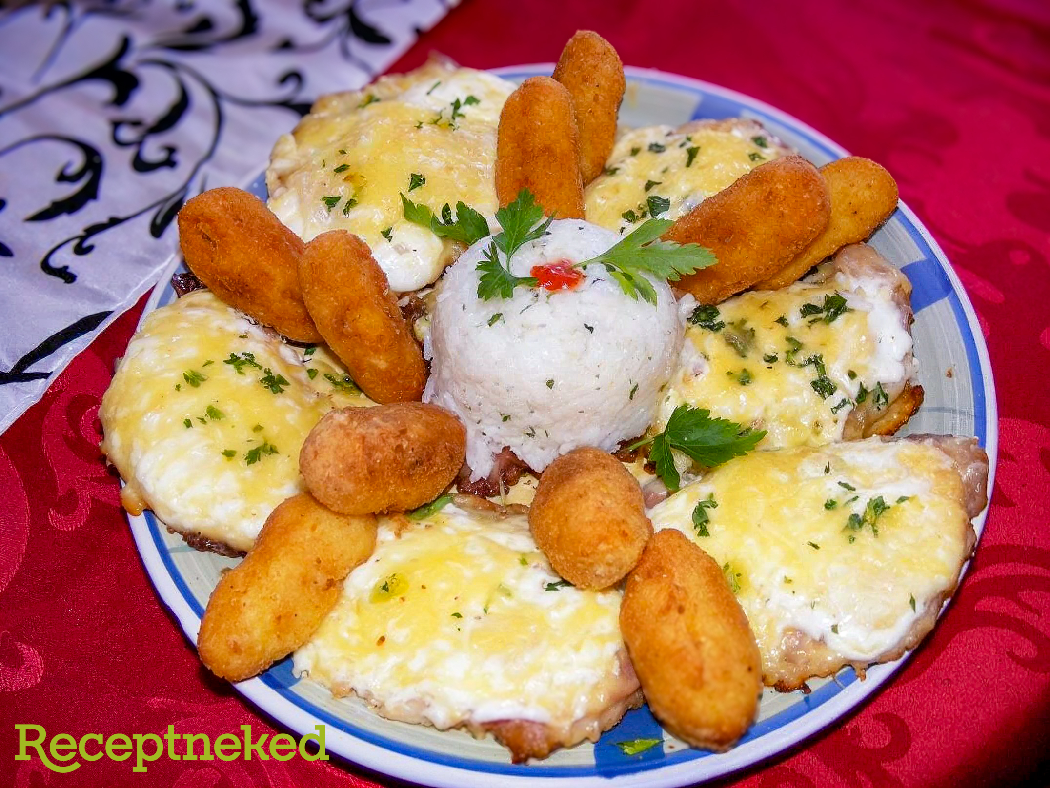 Tálaláskor petrezselymes rizzsel és burgonya krokettel kínáljuk.